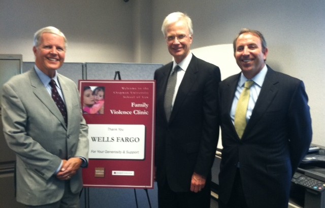 John Evans, Wells Fargo Private Bank regional managing director, and Greg Goodrich (’99), Wells Fargo Private Bank senior financial advisor and Chapman Law alumnus, toured the Bette and Wylie Aitken Family Violence Clinic at Chapman University School of Law on July 10, 2012 with professors Marisa Cianciarulo, Wendy Seiden, and Neda Sargordan. During the tour, Evans and Goodrich were acknowledged for the Wells Fargo gift to the clinic. The professors showcased the unique hands-on experience that Chapman law students gain while applying legal knowledge in a clinical setting to assist low-income families who otherwise could not afford vital legal services.