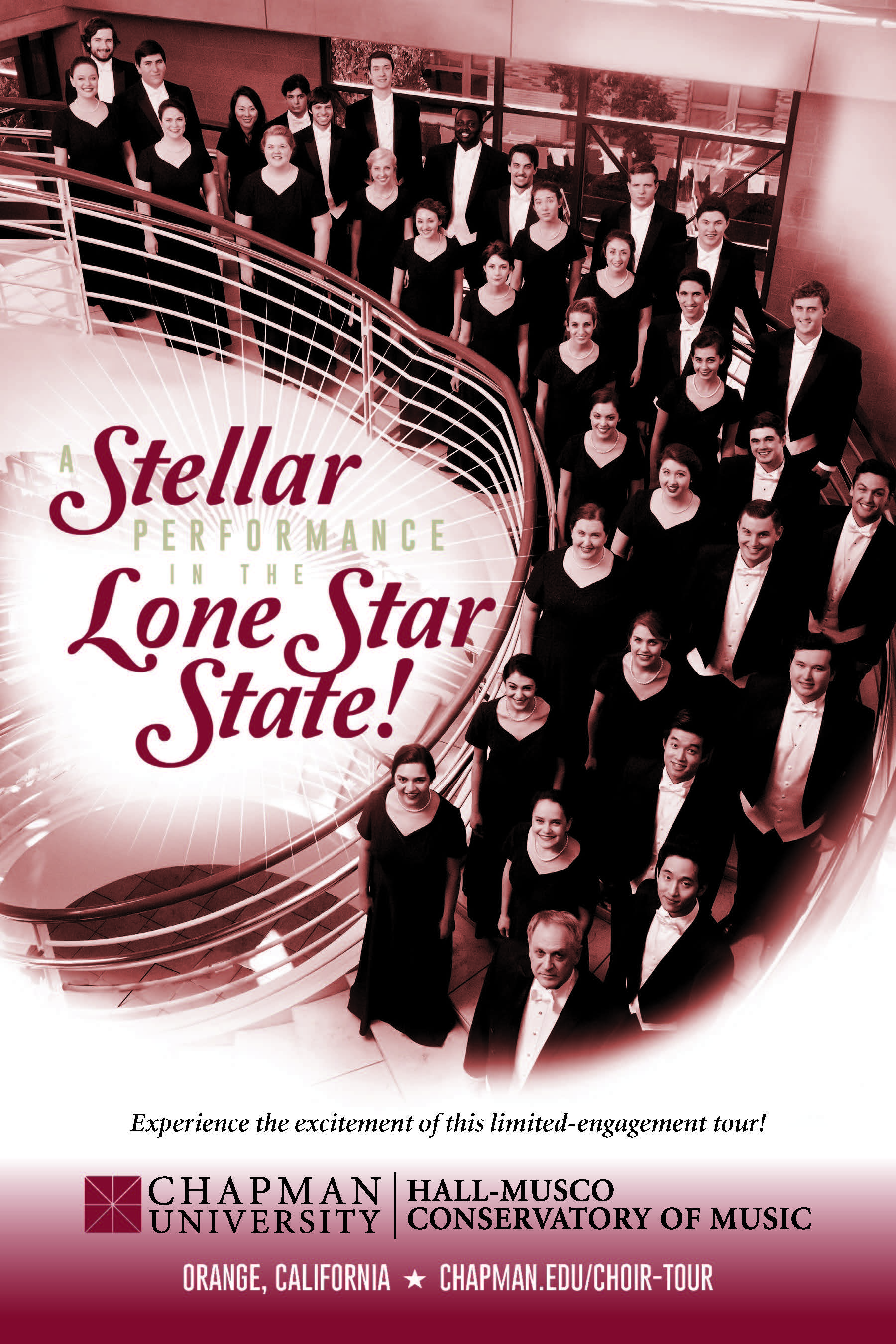 Watch out, Texas, here we come! Chapman’s University Singers are headed back to the Lone Star State in January to perform at churches and venues in San Antonio, Austin and the Dallas/Ft. Worth area. The performances are free and open to the public, so we encourage alumni and all Chapman Family members in the area to attend a performance and support our talented students from the Hall-Musco Conservatory of Music.