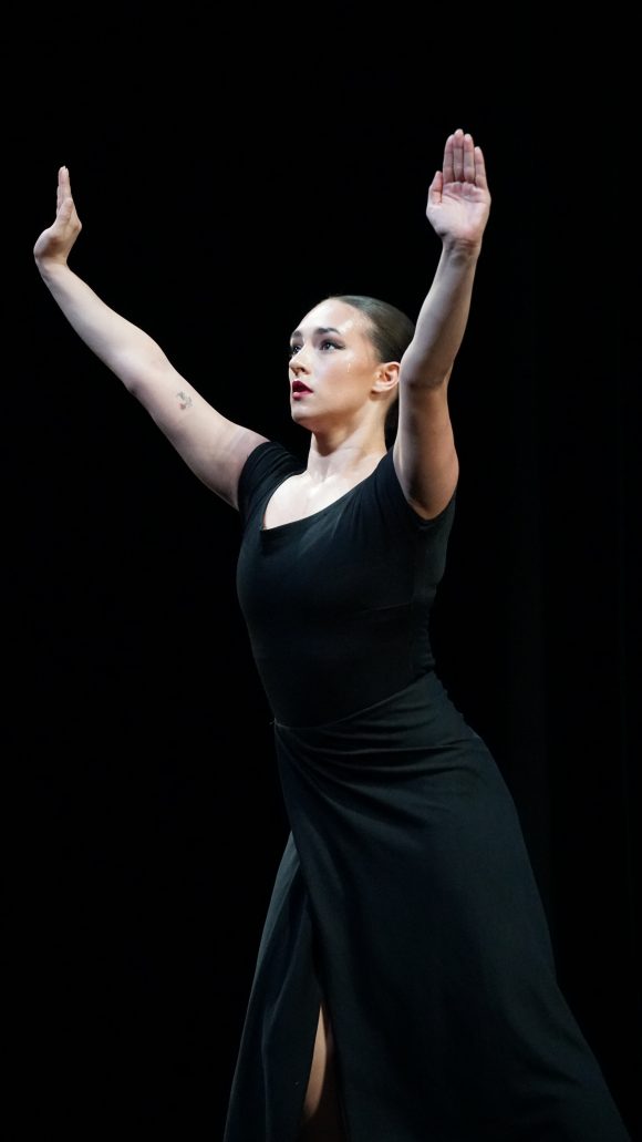 Fang ‘26: “This dance was the first opportunity I had to connect my moral beliefs with dance and performance. It felt like a physical and visceral response to my frustration with everything wrong in the political state of our society. It can be so difficult to know how and when to articulate feelings about current events and so the opportunity to do so in this piece was an honor. It is bittersweet that very similarly unfortunate circumstances that urged Martha Graham to choreograph this piece are the same ones we see almost a full century later.”