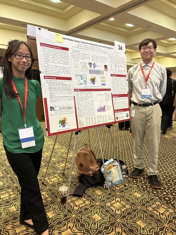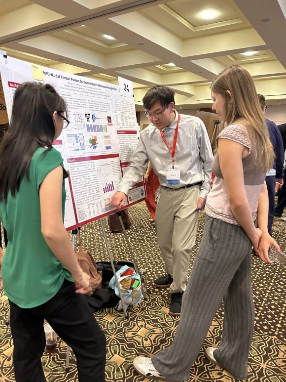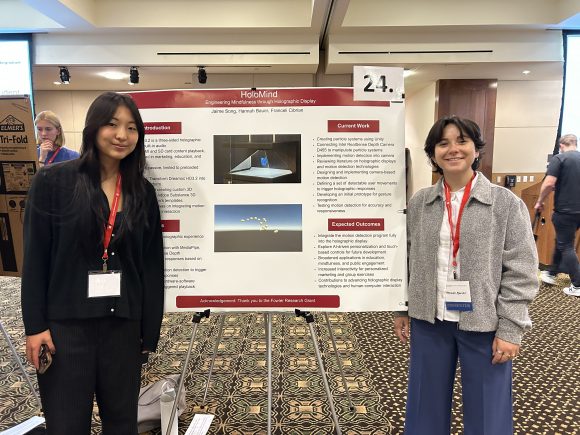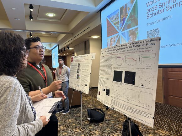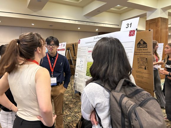 “This experience gave me the opportunity to showcase months of research in a professional setting and receive valuable feedback from faculty and peers,” shared Daniel Mattar (Computer Engineering, ‘27). Mattar’s research—conducted with Dr. Andrew Lyon and ‘23 graduate Elif Narbay—can help us understand how proteins behave in tight spaces under pressure, which can support designing new materials for medical uses: healing wounds, building tissue replacements, or creating blood-clotting agents.