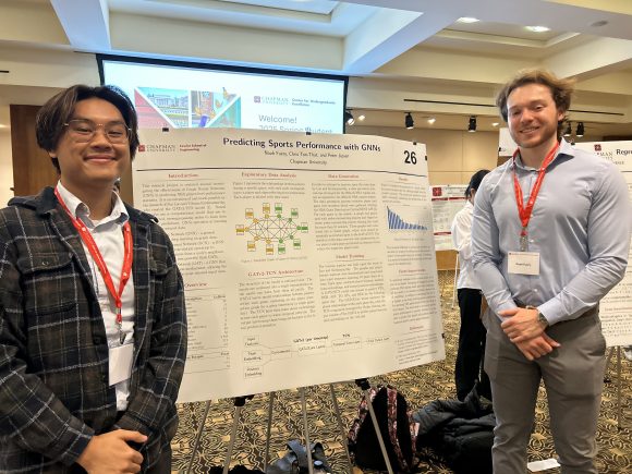 On Wednesday, May 7, and Thursday, May 8, 2025, Fowler School of Engineering (FSE) students showcased their extensive academic research at the Spring Student Scholar Symposium. At this bi-annual event organized by the Center for Undergraduate Excellence (CUE), undergraduate engineering researchers engaged the wider Chapman community by presenting their investigative journeys and discoveries. Through a series of poster sessions and oral presentations, students demonstrated their dedication, creativity, perseverance, and progress, highlighting their roles as FSE scholars advancing cutting-edge technologies.