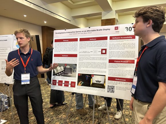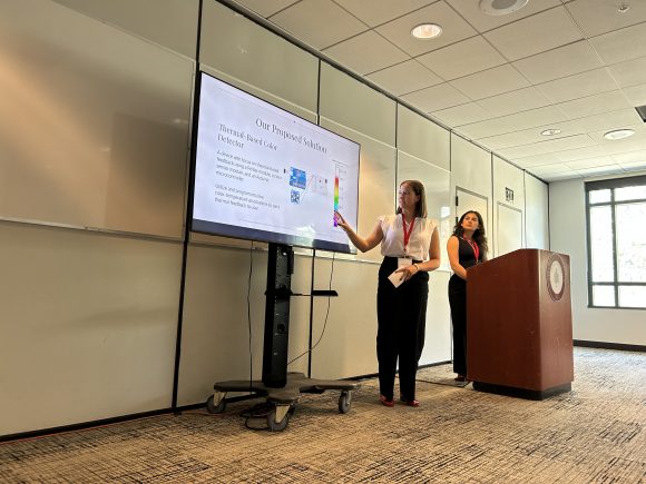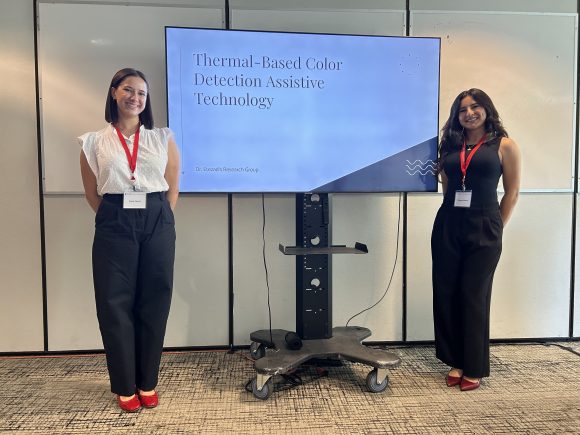 For Grace Swartz (Computer Engineering, ‘26) and Vanessa Sullivan (Electrical Engineering, ‘26), this meant sharing their group’s unique prototype—an assistive technology that uses tactile and thermal feedback to assist blind or visually impaired users in distinguishing colors—with an eager crowd via an oral presentation.