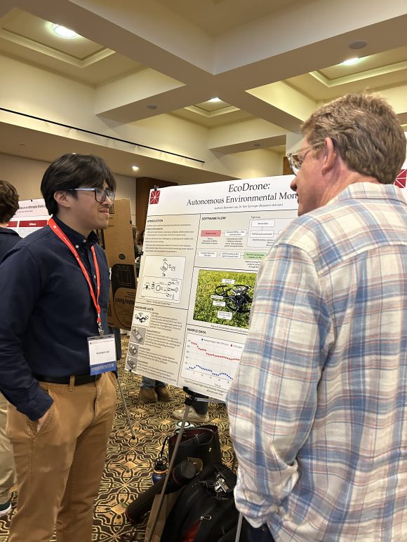 Throughout Lee’s time at Fowler, he has served as a research student alongside Chapman Engineering faculty Dr. Tom Springer. Their latest project (depicted above), “EcoDrone: Autonomous Environmental Monitoring,” was presented at the Spring 2025 Student Scholar Symposium.