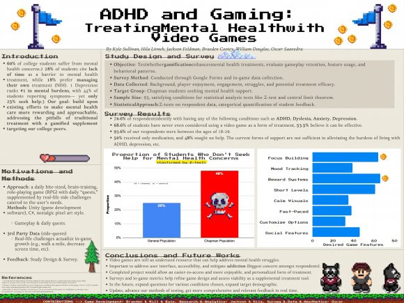At our 2025 GCI Spring Showcase, a group of students presented a poster about the effectiveness of video games when dealing with mental health issues, especially college students.