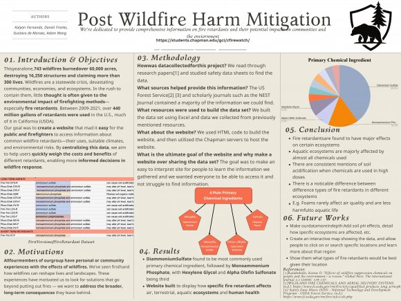 At our 2025 GCI Spring Showcase, a group of students presented a poster about fire retardants and their potential impacts on communities and the environment when dealing with wildfires.