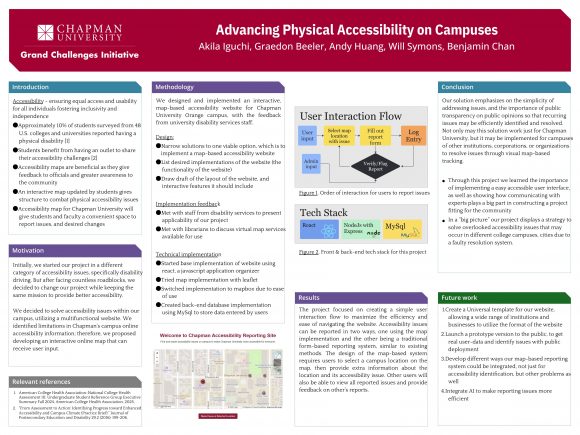 At our 2025 GCI Spring Showcase, a group of students presented a poster about the effectiveness and efficiency of easily accessible user interfaces that can solve and prevent overlooked accessibility issues.