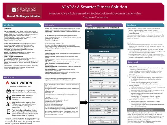 At our 2025 GCI Spring Showcase, a group of students presented a poster about a program that uses AI, wearable data, and user input to deliver a customizable fitness experience through real-time feedback, adaptive workout planning, and an intuitive interface.