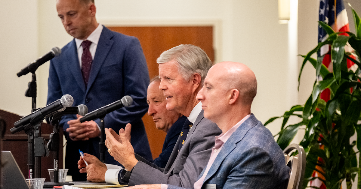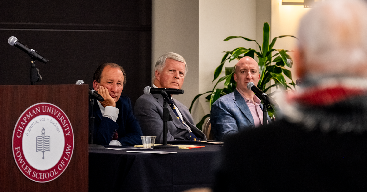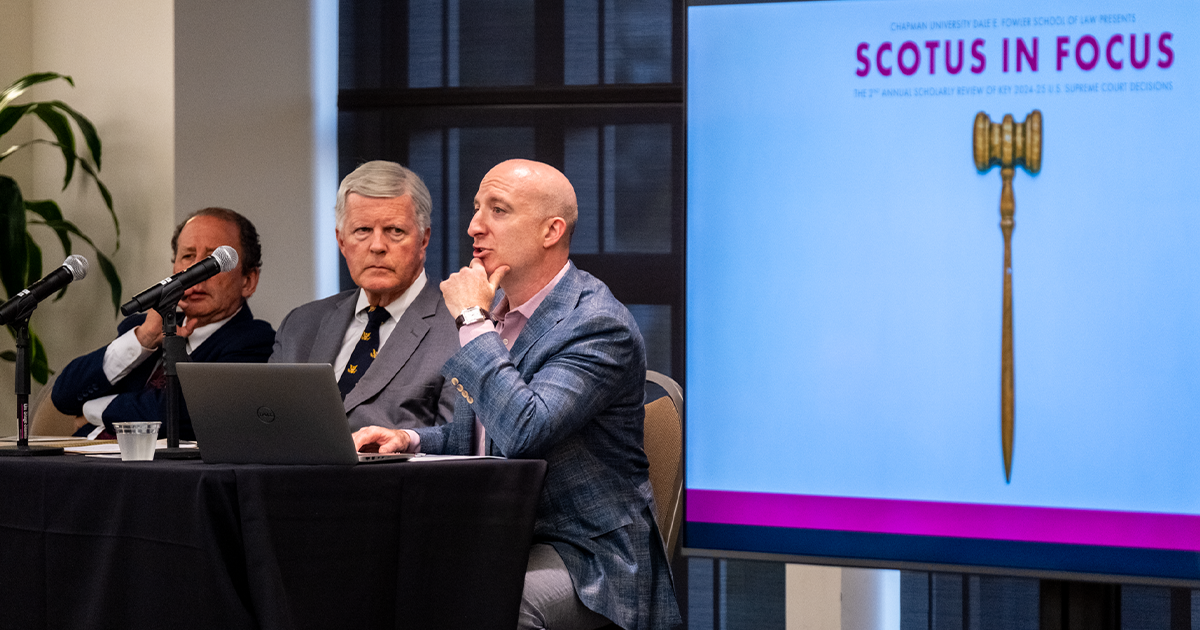 Faculty panelists, Interim Dean Kenneth Stahl, Dr. Tom Campbell and Professor Larry Rosenthal, led by special guest moderator, decorated United States Marine Corps Judge, alumnus LtCol Alex Douvas (JD ’05), tackled SCOTUS decisions and opinions on cases as disparate as Ames v. Ohio Department of Youth Services, Mahmoud v. Taylor, Seven County Infrastructure v. Eagle County, CO, and United States v. Skrmetti. The panelists took the Supreme Court opinions to task while considering the intricacies of each case and giving careful regard to the implications for similar cases and how these decisions may impact lower court decisions in the future.