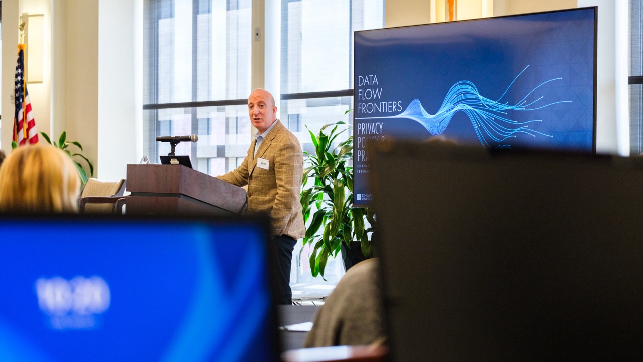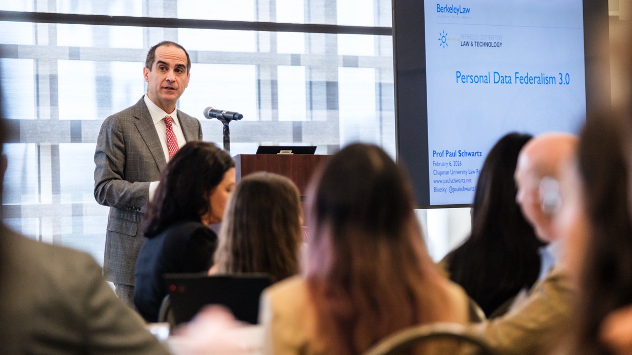 Kennedy Hall played host to the 2026 Chapman Law Review Symposium, Data Flow Frontiers: Privacy, Policy & Practice, on Friday, a sold-out affair boasting esteemed scholars and practitioners in the Data Privacy space. With a keynote address by Berkeley Data Privacy scholar, Professor Paul Schwartz and two panel discussions, the first, examining the terms and conditions we accept daily to utilize software and other tech services; and the second, examining market-driven innovation versus rights-based protections that are struggling to keep with technological innovations, the Kennedy Hall audience was enthralled by the discourse and bleeding-edge developments described by this exemplary group of scholars and guests.