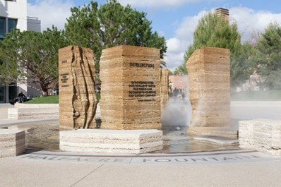 As a final note: The Attallah Piazza was finalized a bit later and became the gathering place to bind these buildings together. The Piazza features a majestic fountain with the 4 pillars of a Chapman education engraved on its 4 mighty monoliths. These 4 buildings, that Detoured Chapman students for a brief moment in time, now solidly symbolize 3 of these pillars: Intellectual, Spiritual, and Social. What about the Physical pillar? Well, as Chapman continues to grow, we have plenty of space to walk between and around and through our beautiful and functional campus buildings, built twenty years ago!!