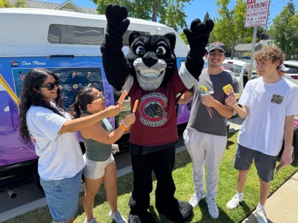 The Office of Community Relations is welcoming students back with something sweet. The first-ever #GetTheScoop #ChapmanChill ice cream social was held on August 19 and 20, where students enjoyed free ice cream treats while learning valuable tips for being a good neighbor in Old Towne Orange. Each attendee received The Panther’s Guide to Living Off Campus, a helpful resource covering local amenities, quiet hours, parking guidelines, and ways to keep our community safe, respectful, and connected.