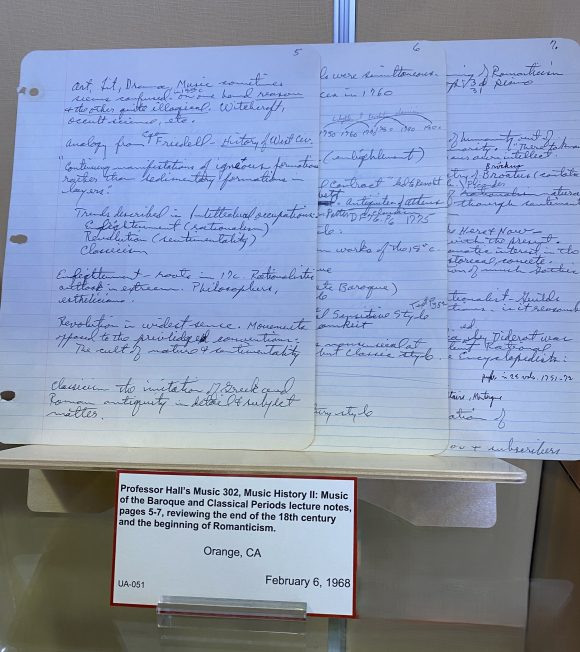 The display serves as both a tribute and an invitation, encouraging visitors to explore the history of Chapman through the work of one of its most influential educators. Through these preserved materials, Dr. Hall’s dedication to music, teaching, and the Chapman community continues to inspire future generations.