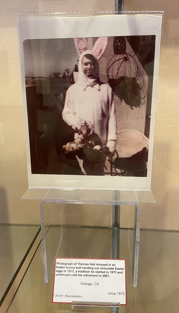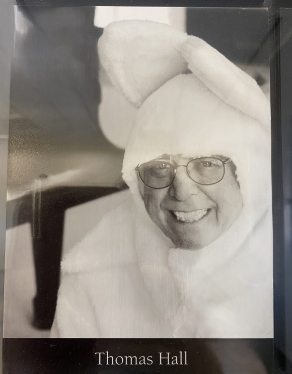 When visitors step into the Henley Reading Room of Leatherby Libraries and look at the wall of emeriti faculty portraits, one image often draws a second glance. Among the distinguished scholars is Dr. Thomas G. Hall, pictured in an Easter bunny suit. As Dr. Claudia Horn recalls, “When you look at the pictures of emeriti faculty on the wall in the Henley Reading Room of Leatherby Libraries, you will find Tom Hall in an Easter bunny suit, as it was in his tradition to pass out chocolate Easter eggs in costume from about 1973 until his retirement.” The photograph captures something essential about Dr. Hall: a respected scholar who also brought warmth, humor, and generosity to the Chapman community.