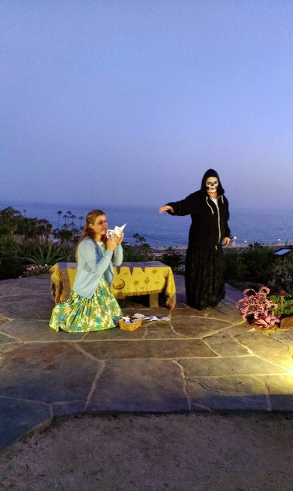 . She performed as part of The Monkey Wrench Collective, an acting troupe. The performance led audience members throughout the property of Casa Romantica in San Clemente.