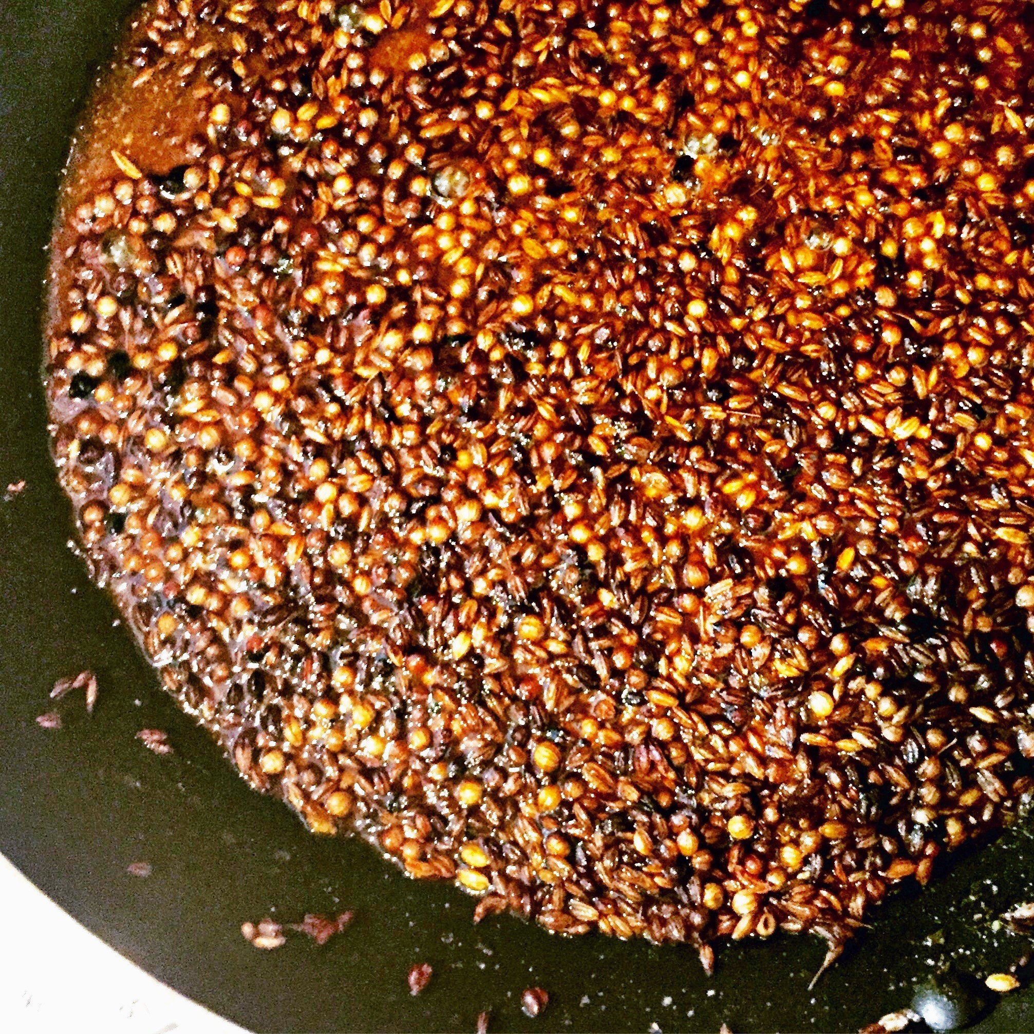 Fennel seeds, coriander seeds and cumin seeds sautéd in ghee.