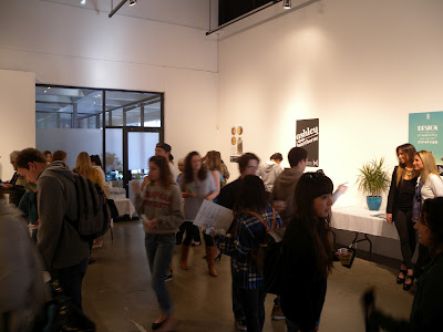 This week was the opening for the Junior Portfolio Show. Twelve students set up a table with their professional portfolio book which included ten of their best design projects. Each student also put up a large poster created by themselves above their table. Their portolios are being reviewed by full and part time faculty. In addition, they will be required, on April 28th, to show their portfolio at the 9th Annual AIGA Portfolio Review, held at Chapman University