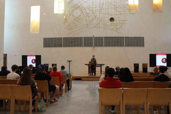 Dr. Susan Ross 2026 Griset Lecturer, “Can Beauty Really Save the World? Theological Aesthetics in a Time of Chaos.” Photo by Violet Gude (’29 Broadcast Journalism major).