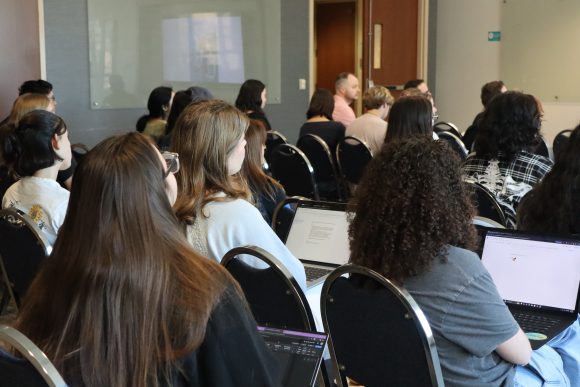 Students, faculty, and staff attended the event with Dr. Sa’ed Atshan, Associate Professor of Peace and Conflict Studies and Anthropology and Chair of the Department of Peace and Conflict Studies at Swarthmore College. Photo by Violet Gude (’29 Broadcast Journalism major).