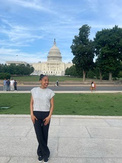 Jaelyn Mitchell (‘26 Political Science, Africana Studies, and Women and Gender Studies minors) standing in front of our Nation’s Capital. Photo courtesy of Mitchell.